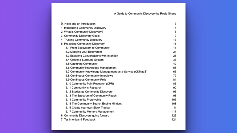 It's a comprehensive guide to community research with strategies and tactics to learn about and with your people. Ultimately the goal is to build a better business.