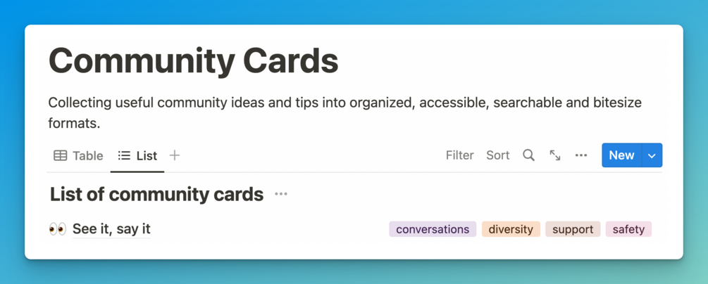 Community Cards - A database of searchable community building ideas tactics