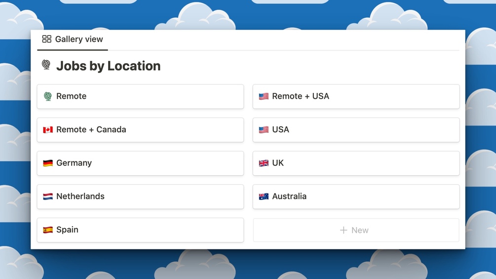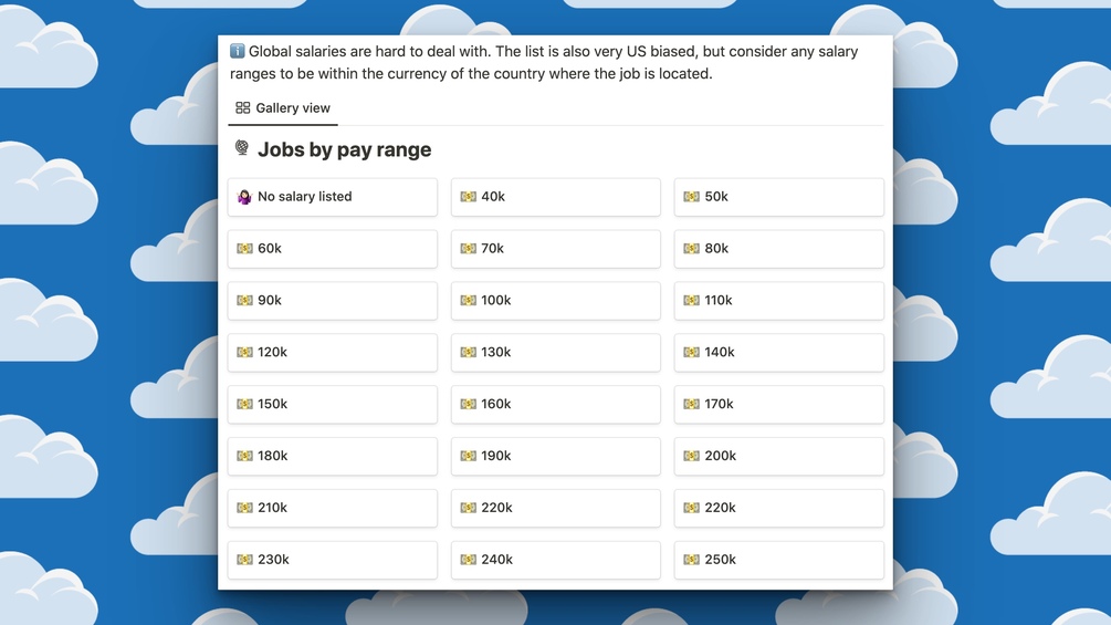 I’ve created filters for types of jobs, pay ranges and locations. The full database is towards the bottom.